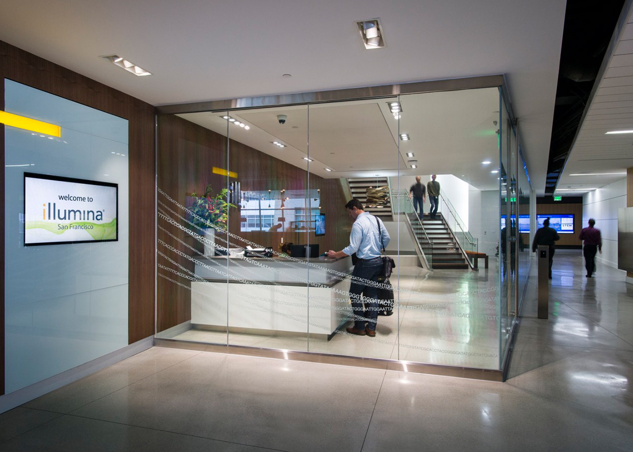 Located in the iconic 499 Illinois building, Illumina’s office and lab tenant improvement was completed in parallel with a warm-up of an existing cold shell. This research and development facility includes a two-story lobby with interconnecting stairs, a kitchen and a data center.