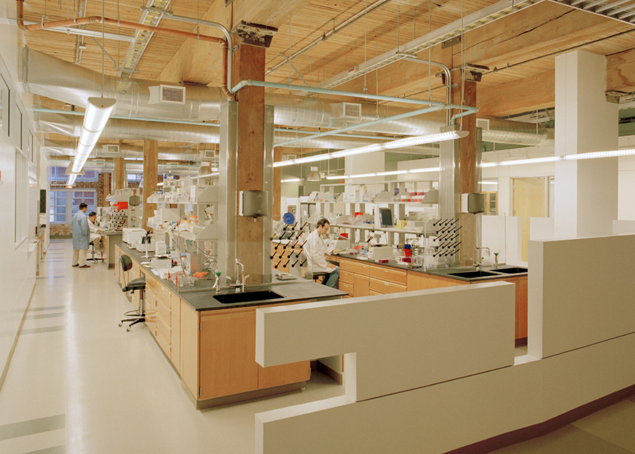 The labs were constructed in a historic heavy-timber, wood-framed building. Signature Bioscience wanted to keep the heavy timber columns and ceilings exposed. Truebeck found creative solutions to allow this organic structure to remain exposed and not impact research functions.